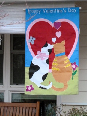 Jog the suburban streets of Menlo Park and you see lots of Valentine’s Day flags – and even hearts in trees. While this one was a bit “cute” in the Dawn Jogger’s mind, it also said it all. It brought back fun memories of son John painstakingly picking out each Valentine for each classmate in first/second/third grade. And then he grew up…