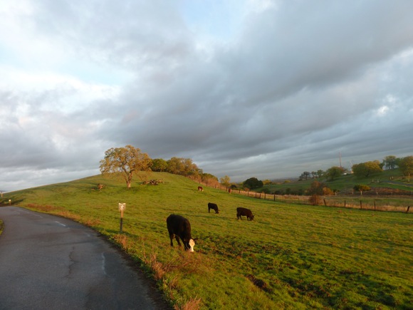Yes, it’s the same thing the Dawn Jogger whines about every year, particularly since the start of daylight savings time was moved to March. The spring forward of the clocks means it’s very dark at the DJ’s normal get up time of around 6:00 am. This morning she didn’t even attempt it, instead setting out around 7:00 (which is, of course, 6:00), still well before the sun rose. Her thought: why not be able to see the glorious green of the Dish land glowing in the sunlight? They golden hue of the early morning light can’t be beat…