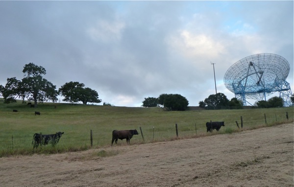 The combination of getting a bit used to New York time and the early, predawn light has resulted in the Dawn Jogger waking up earlier than usual. This morning she decided to get right up at 5:30 am and head over to Big Dish, walking from the Stanford gate when it opened at 6:00 am. A “crowd” of about a dozen had already gathered, and while she could see the rain squalls on the western hills, none managed to move in as she walked the up and down loop.. She did see the now almost full grown herd of young cattle, grazing on the other side of the fence. She likes to think they lined up to look at her…