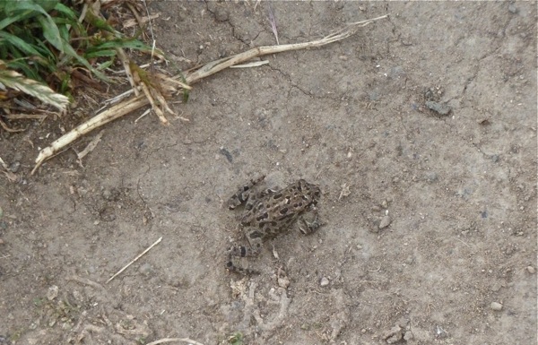 Even though it happens every year, the Dawn Jogger is always surprised the first time she encounters a pack of frogs along the trail that circles Lake Lagunita. Sometimes the tiny, one-inch amphibians are so thick that it’s almost impossible not to step on at least a few of them. That wasn’t the case this morning. Not only were they concentrated at just one end of the Lake, they were few enough in number that it was easy to step around them. Guess it’s happy hunting for the Snowy Egret still in residence…