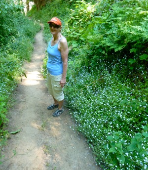 The first warm weather of the season arrived yesterday, as did a friend from the East. That made for a good reason to hike Windy Hill. They got off to an early enough start to get up the steep sunny side before the heat of the day set in, and then took their time ambling back down Hamm’s Gulch. At every elevation there were different wildflower stands. Of particular note were the the blue something or others…