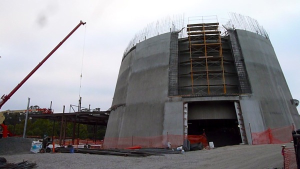 A return of grey skies prompted the Dawn Jogger to abandon her plans for a Arastradero run (no golden hue of first blush possible) and she instead opted for the DJs traditional spin around the Stanford campus. She remains fascinated by the construction of the new performing arts center. Today, it was a peak inside the belly of the beast…