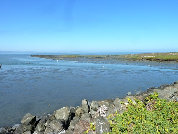 The Dawn Jogger has decided to explore new areas on the Sundays she heads to Oakland to spend some time with Grace and the gang. Today she took a terrific walk along the Bay, part of the Hayward Regional Shoreline. The out and back is around ten miles; she found an nice almost four mile loop. More birds than people…