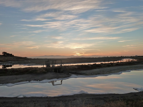 The Dawn Jogger’s trusty Lumix just can’t quite capture the vistas that greet the visitor before dawn at Bedwell Bayfront Park, her latest Wednesday routine. This morning she arrived as the moon was going down, full enough to reflect on the salt ponds. Looking east, the impending sunrise was giving the wispy clouds a pink glow. A 60 minute visual treat…