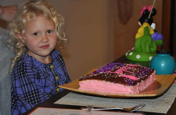 Grace turned four years old yesterday but the family celebration was today. The female Dawn Jogger can still remember vividly the excitement she and the male DJ shared when they drove to Walnut Creek the day after she was born. The first grandchild – and a girl!